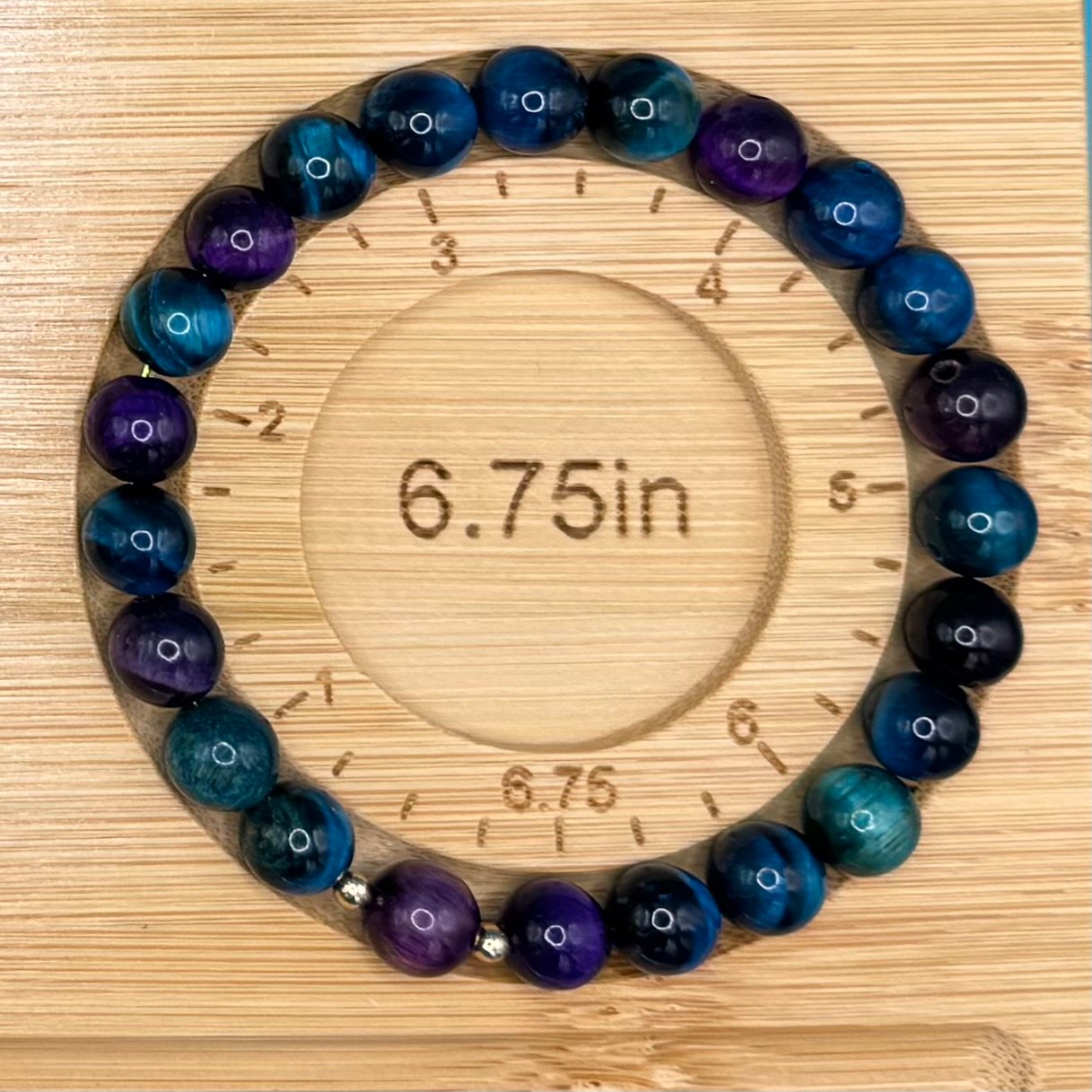 A beautiful handmade stretch bracelet featuring deep blue, teal, and purple beads inspired by the colors of the ocean and night sky. Elegant, lightweight, and comfortable for everyday wear.